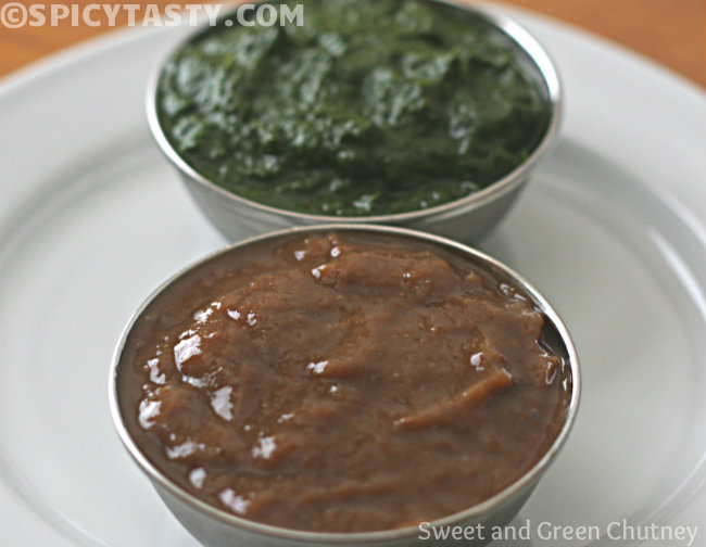 I love chaat items a lot and this sweet chutney and green chutney are needed for most of the chaat items.  These are very easy to make and we can store them for one month.